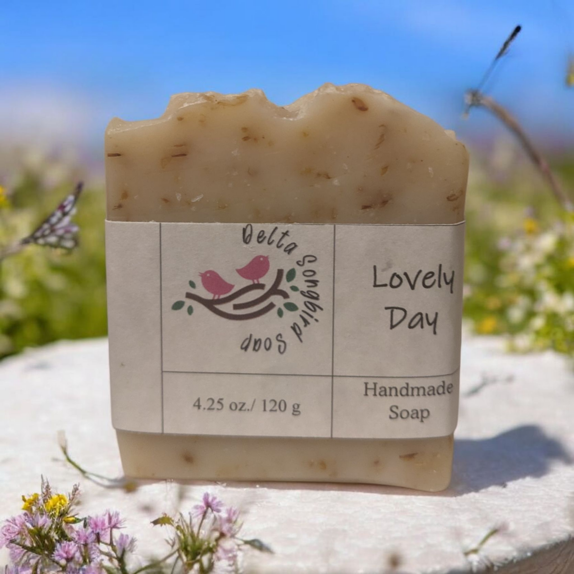 Let every day feel like a Lovely Day with this calming, lavender-scented bar. This gentle soap produces a rich, creamy lather that leaves you skin feeling clean and refreshed. Infused with soothing calendula petals, turmeric, and lavender essential oil, it's a botanical treat for your daily routine.